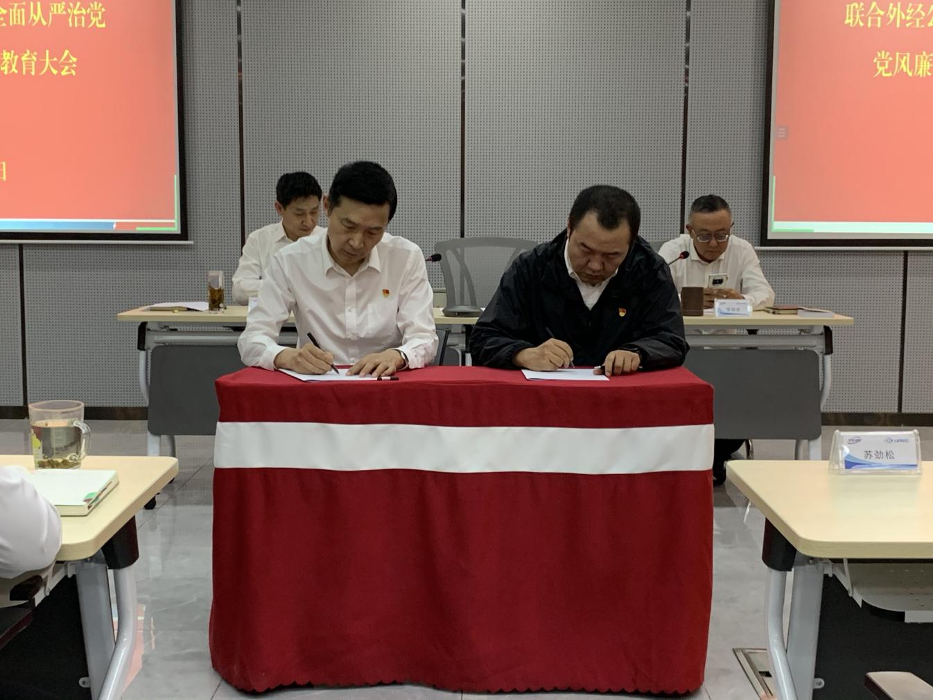 會上,公司黨委與領導班子成員簽訂2025年度一崗雙責責任書,與各部門、駐外辦事處及所屬公司負責人簽訂2025年度廉潔從業(yè)責任書,參會人員簽訂領導干部廉潔從業(yè)承諾書及領導干部廉潔家風建設承諾書。