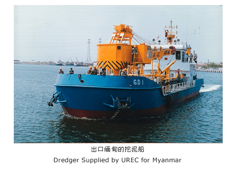 UREC于1999年6月8日與緬甸內(nèi)河局簽訂了挖泥船供貨合同,是我國首次出口工程船到緬甸。三艘挖泥船分別為1.6立方米反鏟挖泥船、25M邊拋耙吸式挖泥船、(抓耙式)多功能耙吸挖泥船。這三艘挖泥船于2001年6月21日正式投入使用,運(yùn)行良好,為緬甸解決各內(nèi)河疏浚、除淤起到很大作用。