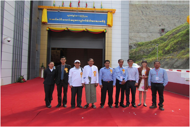 2015年12月9日上午九時(shí),典禮正式開始,緬甸電力部部長(zhǎng)首先介紹了上邦朗電站的有關(guān)情況,然后簡(jiǎn)明扼要地?cái)⑹隽私衲昙按饲翱偨y(tǒng)任期內(nèi)的相關(guān)電力項(xiàng)目和設(shè)施的建設(shè)情況。隨后,緬方領(lǐng)導(dǎo)及我公司領(lǐng)導(dǎo)一同前往電站進(jìn)行參觀,并于參觀后合影留念。