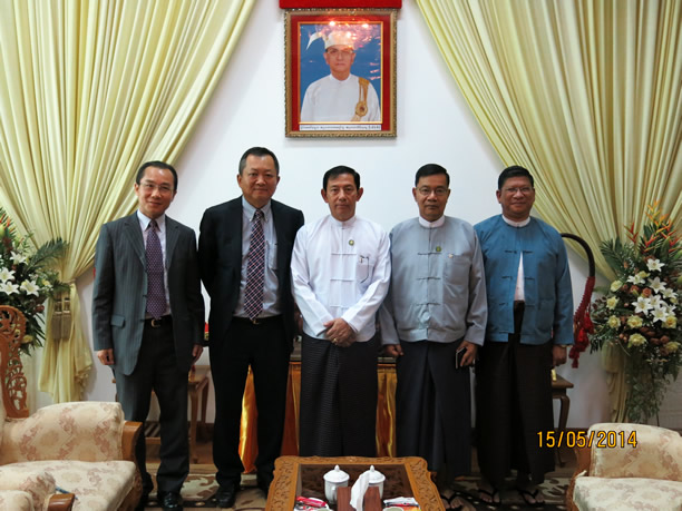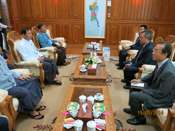 2014年5月15日當?shù)貢r間早上9點, 內比都鐵道部,云南能投聯(lián)合外經(jīng)股份有限公司董事長馮柯先生與緬甸鐵道部部長U Than Htay,就加強雙邊鐵路方面的經(jīng)濟技術合作交換意見。鐵道部副部長 U Myint Thein 和U Lwin Thaung等參加了會見。