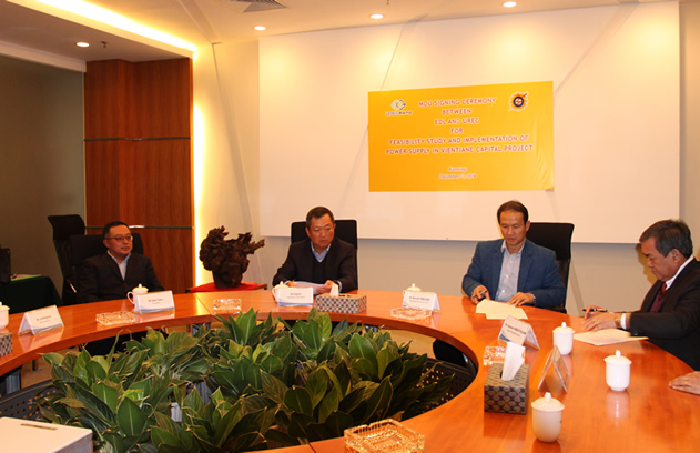 With the full support and guidance of the leaders of Company, Laos power engineering project was implemented smoothly and a significant breakthrough is made in market development. On December 1st, 2014, Mr. Feng Ke, the Chairman of Board, and Mr. Guan Yukun, President, of Union Resources & Engineering Company Limited (UREC), and Mr. Sisavath THIRAVONG, Managing Director, and Mr. Vongmany SONEKETSOULINH, Deputy MD, of Electricité Du Laos (EDL), had a deep negotiation and successfully signed 'Memorandum Of Understanding of Power Supply in Vientiane Capital Project' in Kunming.