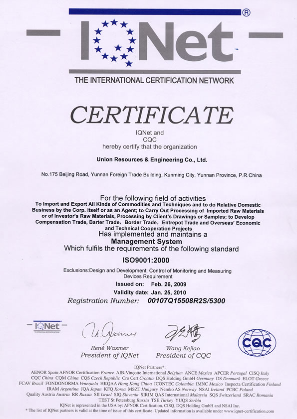 IQNET CERTIFICATE